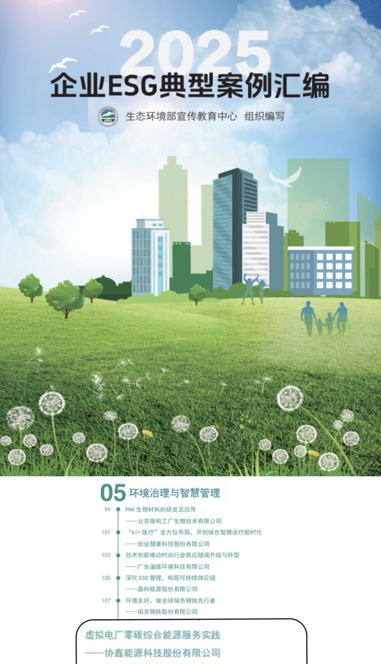 近日,由生态环境部宣传教育中心发起、新浪财经ESG与商道咨询联合遴选的《2025年企业ESG典型案例汇编》正式发布。协鑫能科凭借在虚拟电厂零碳综合能源服务领域的创新实践,成功入选全国60个优秀案例之一,彰显企业ESG实践的行业引领地位。