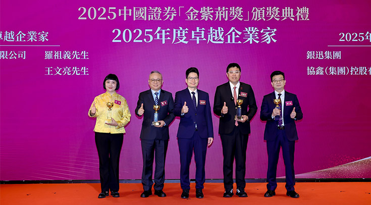 2026年1月30日,第十五届香港国际金融论坛暨中国证券金紫荆奖颁奖典礼在香港举行。协鑫集团董事长朱共山凭借在引领绿色能源变革及践行可持续发展方面的卓越领导力,荣膺“2025年度卓越企业家”奖项。集团副董事长孙玮出席典礼并代表领奖。